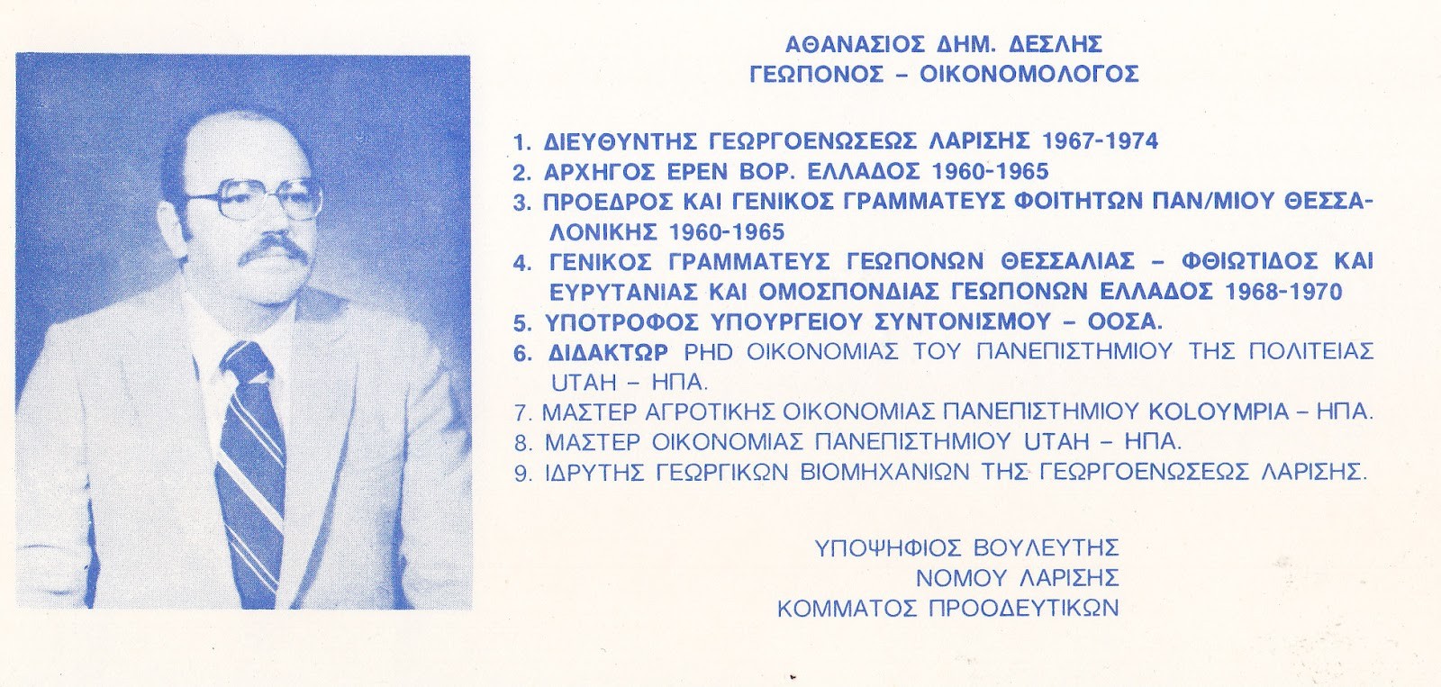 Born in 1938 Greece, Athans was raised in a period of Greek life that included WWII, the Greek Civil War, and eventually deep political upheaval during the 1960’s. His life was built through a long dedicated effort towards education, and higher learning, having earned a BS, and MS from the Aristotle University of Thessaloniki in his early career He quickly became a young fast rising figure in politics and public service as he served as Director of Agriculture in Greece and was headed to become a member of Parliament until a military coup (the Junta) in Greece occurred in 1967, after which Athanassios moved his family to the US and continued his education in the US earning a BS, and MS from Columbia University of Missouri, and furthered his academia in Utah for a MS, and PHD Studies in Macro Economics at Utah State University as he maintained a lifelong passion for education, politics, and civic life. Later in life he returned to Greece and ran for Public office in the 1980’s, guided by a deep belief in public service and national responsibility.