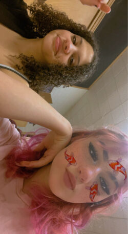 Where do we start. When we met Zaia, she was the mother of the kids. So confident in rallying the kids at kids camp. The confidence was unmatched although I was a scared and nervous new Mom. The Loomis’s assured me she knew what she was doing… she totally did. Parented the crap out of my kids and I was so nervous. As Zaia transitioned into her chosen self, we watched them grow. Grey always checked in with all the kids. Every camp. Every gathering. They made us all feel safe and safe with our around in festival settings. Fast forward to when my babies weren’t babies anymore. Grey came over to get hair done with her mom sometimes. When Miche and Grey would switch chairs, Grey would immediately run with my children. In my tiny home. “Let’s do Art, what do you want to do?”. Although I love listening to people care about what my kids want to do. Grey held a magic that I can’t explain. More recently, we camped at the Ocho and my daughter Èva again latched onto Grey. They spent the whole weekend together. They did art while the rest of us took tours and built things. Éva then changed her art style completely based on what Grey shared with her. I have shared a photo of one of Éva’s drawings. This was two years ago when we visited the Ocho. She still draws eyeliner like Greys on every single one of her characters. Thank you for your amazing energy, spirit, love for kids and makeup/fashion. You will forever live in our hearts Grey.